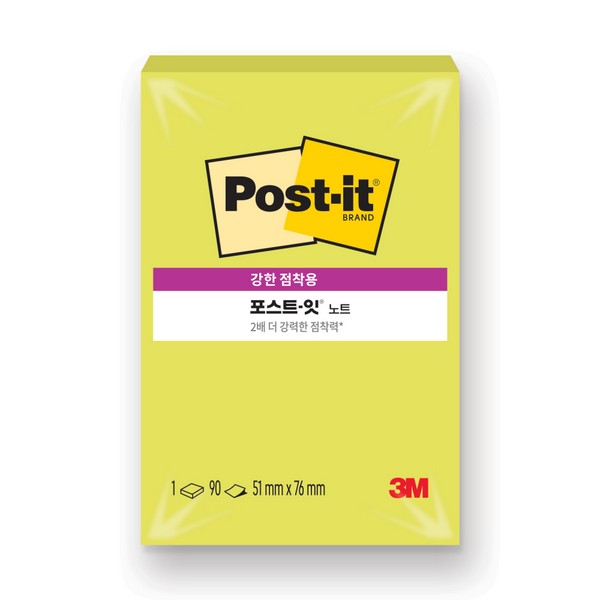 - 3M 포스트-잇 강한점착용 그리너 노트 654 럭키그린